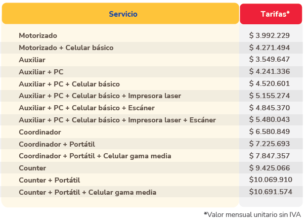 - Coordinador: Servicio especializado para adelantar actividades de coordinación y supervisión de las estapas operativas del servicio postal.